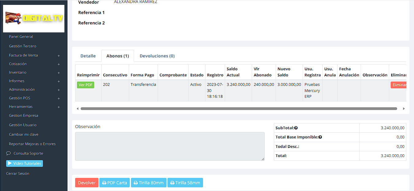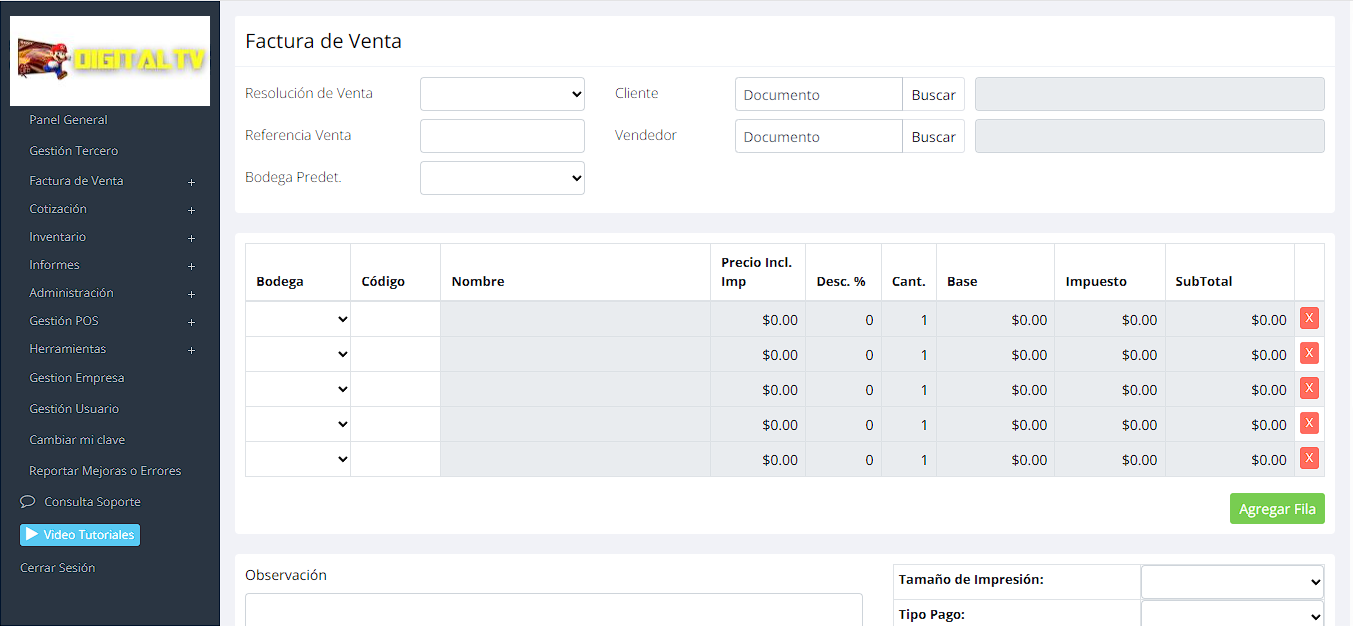 Opcionalmente si estas obligado a facturar electrónicamente tenemos integración con la DIAN.