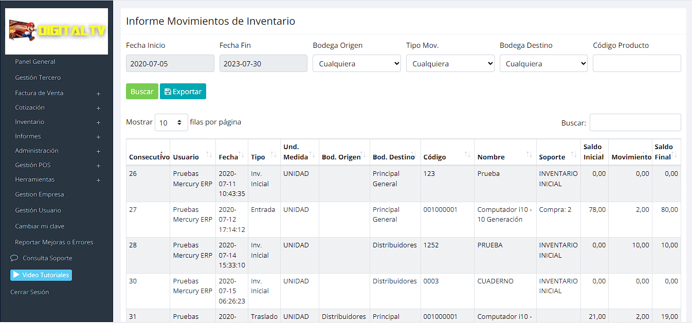 Consulte por rango de fechas las ventas, compras, CxC, CxP, movimiento de inventario, ingresos y egresos.